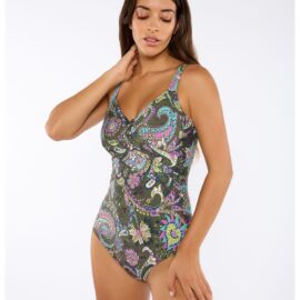 Escote en V sin aros, con foam y con bonito drapeado cruzado en el escote.