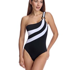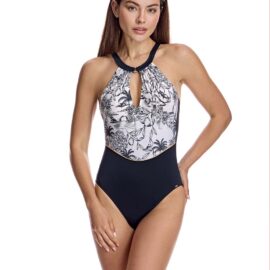 Copas drapeadas de gran capacidad y abalorio en el escote.
