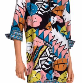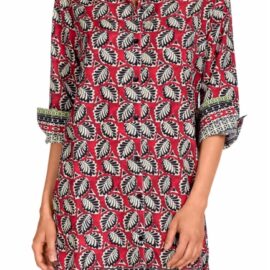 Bonito estampado de hojas y cenefas contrastada a juego con los de su colección.