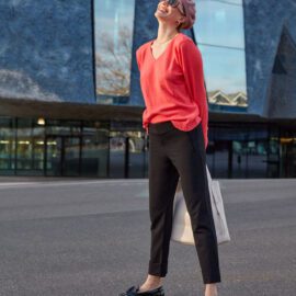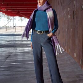 Piernas rectas y anchas con vivos pespunteados a contraste.