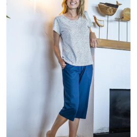 Pantalón pirata liso corto con bolsillos laterales.
