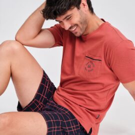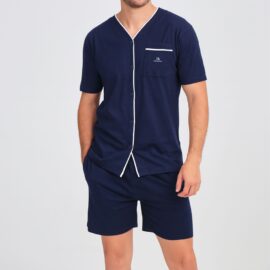 Camiseta abierta abotonada con bolsillo y vivos a contraste.