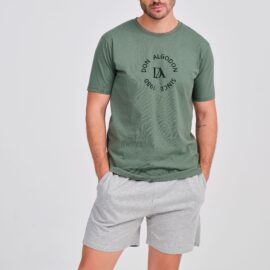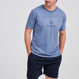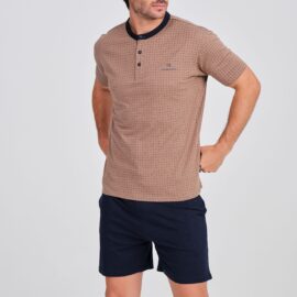 Camiseta estampado geométrico con cuello tapeta abotonado y vivos a contraste.