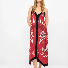 Escote recto con tirantes finos regulables con abalorio y con cruzado original en la espalda.
