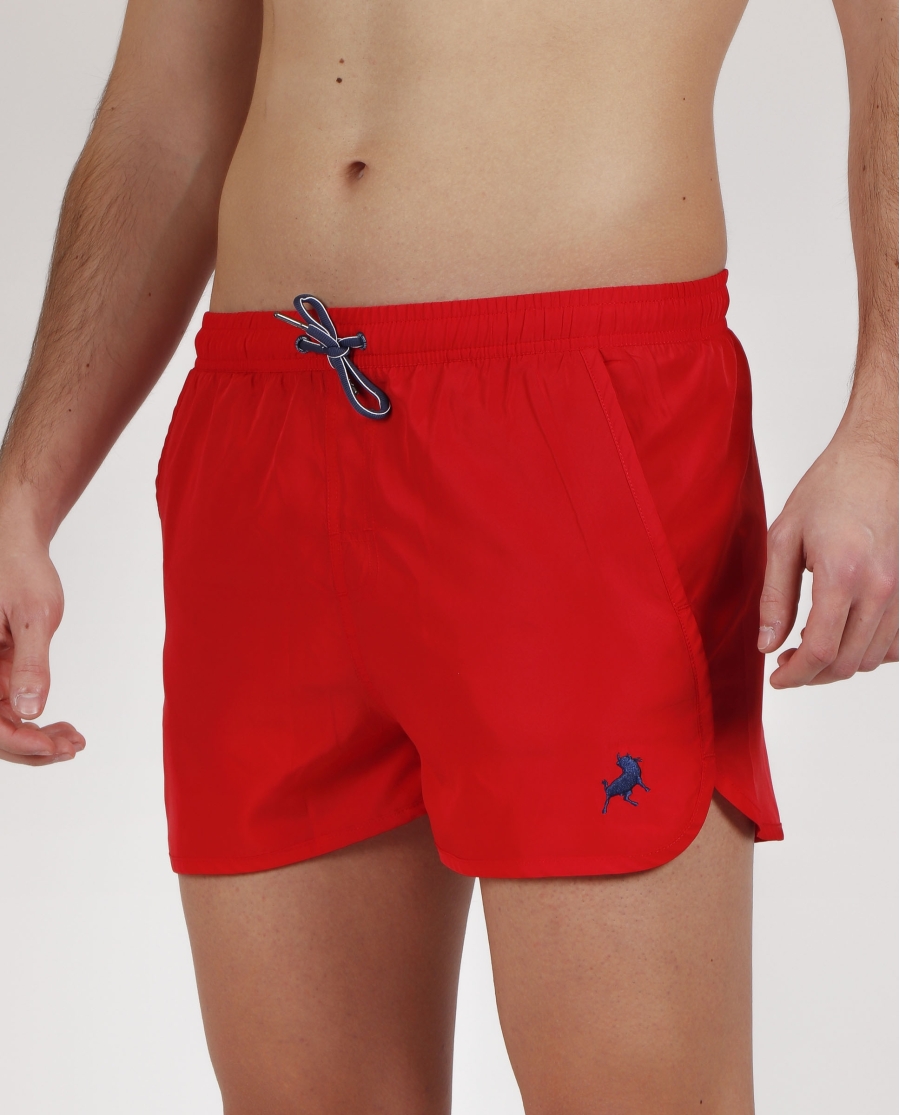 Patrón corto tipo rocky con detalle de bordado de la marca a contraste de color.