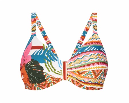 Gracias a las copas exteriores divididas en tres partes y las pretinas laterales, ofrece una excelente sujeción del pecho junto a una forma particularmente atractiva, incluso para las tallas más grandes.