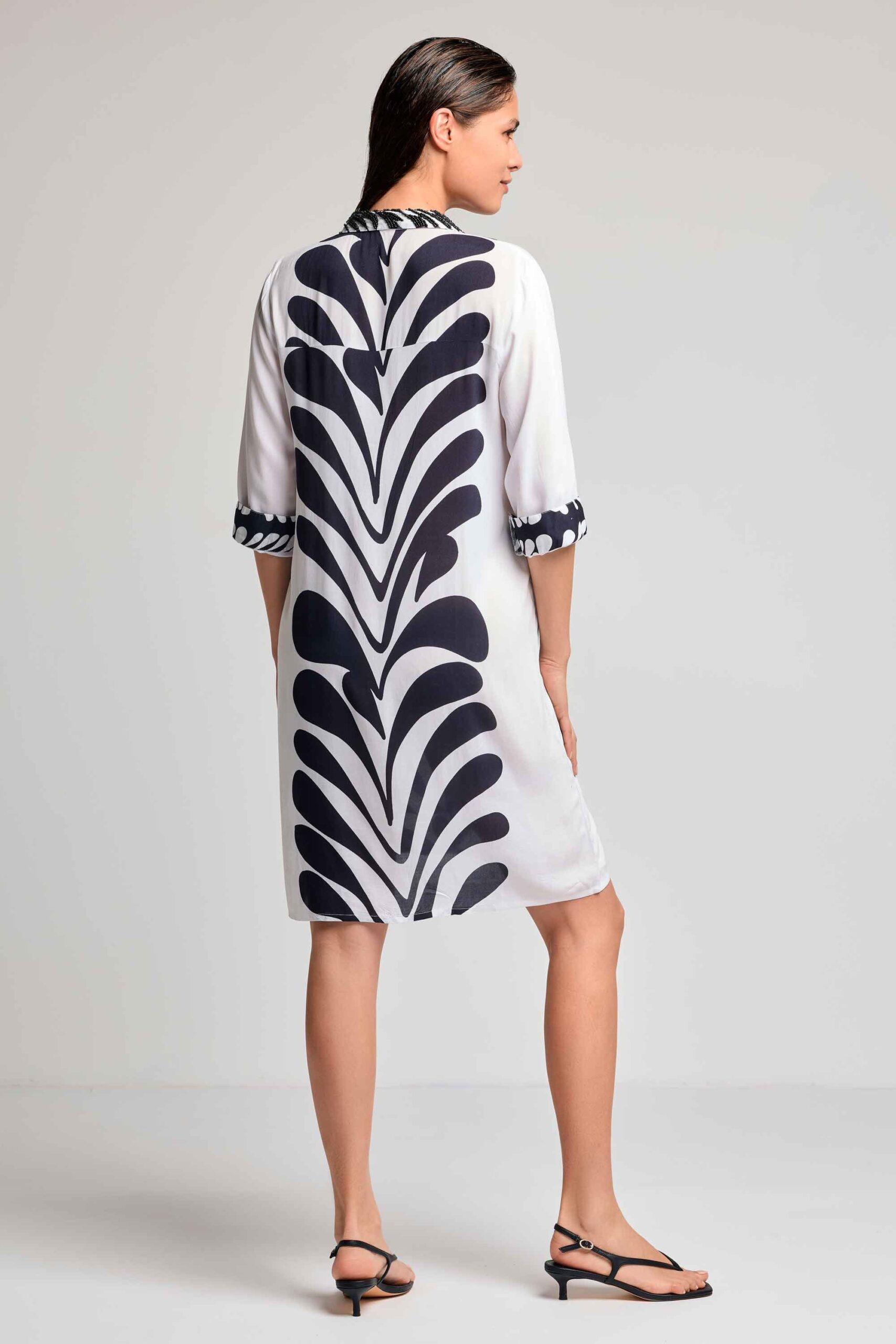 Detalles de cuentas en el cuello que le dan mucha clase.