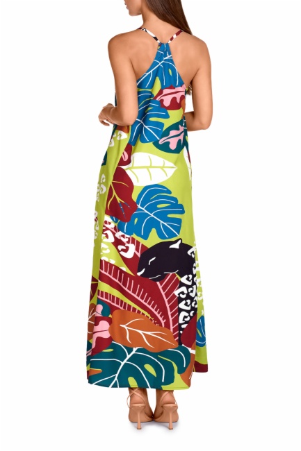 Escote halter con tirantes finos regulables y bonito abalorio animal.