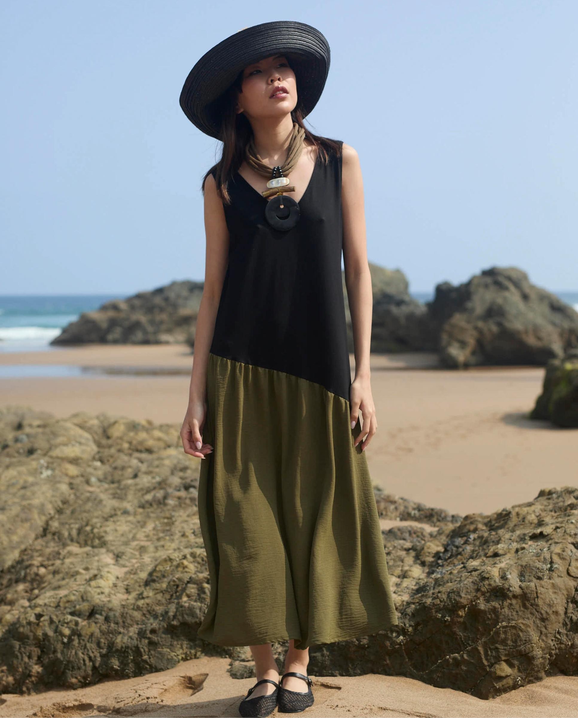 Parte superior en suave viscosa ajustable con cuello en V y sin angas.