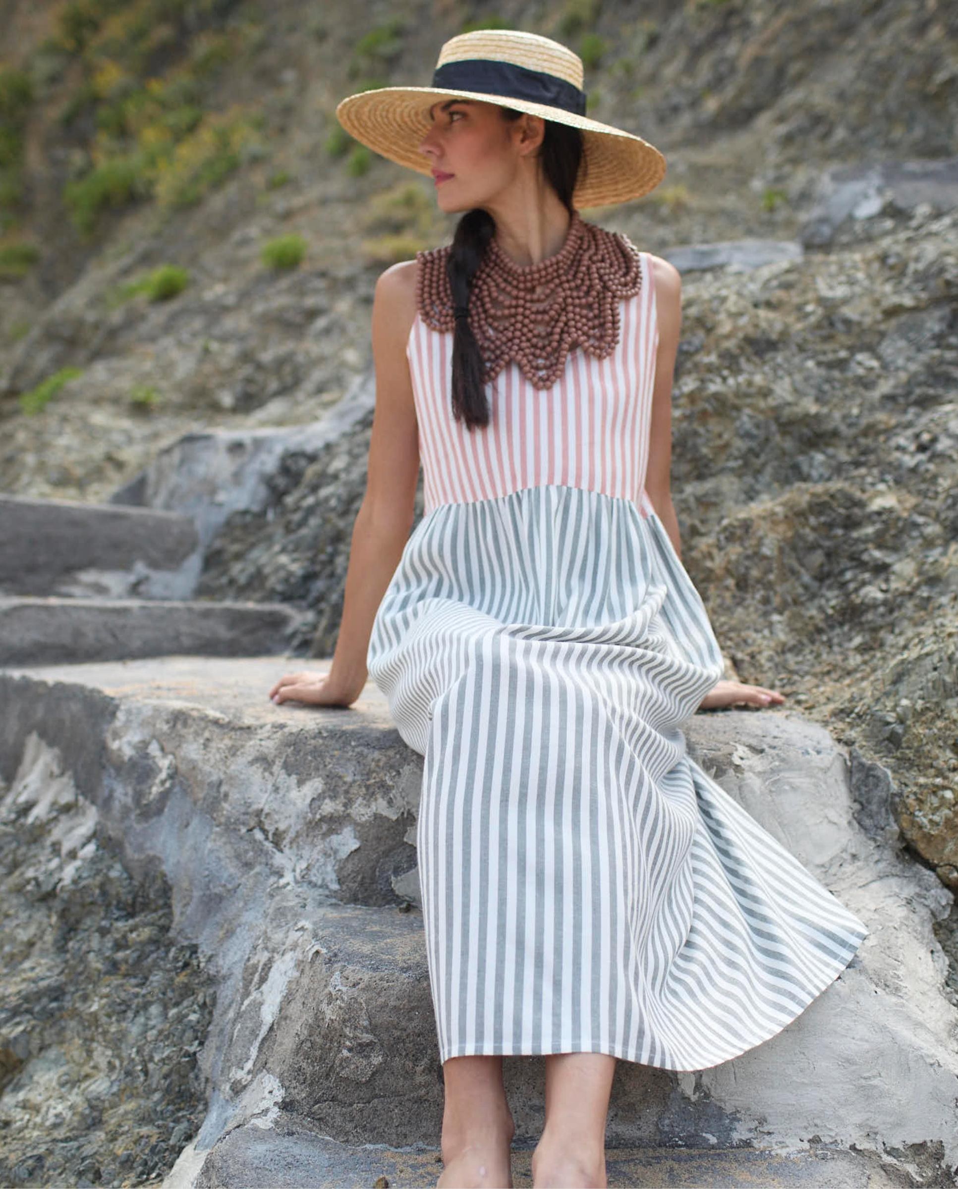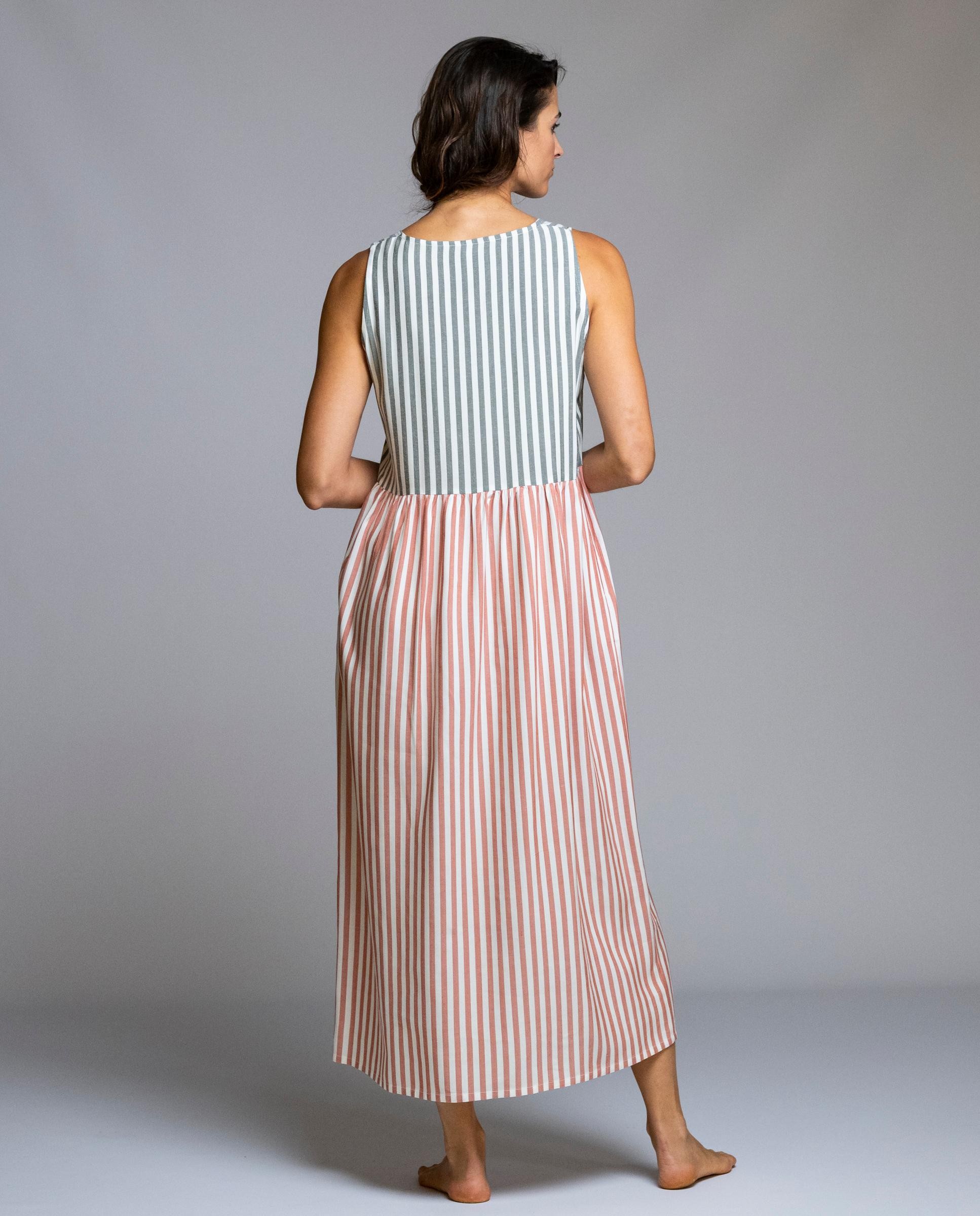 En bicolor con estampado a rayas verticales muy favorecedoras.