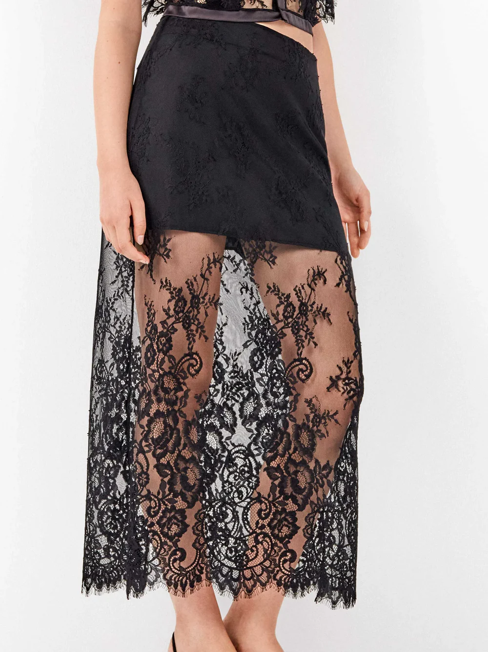 Tirantes regulables y detalle de galón de encaje en el pecho.