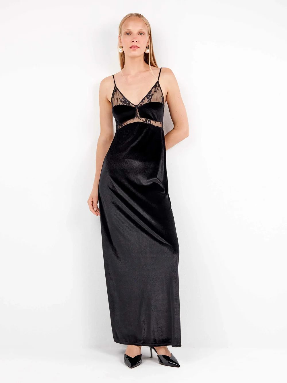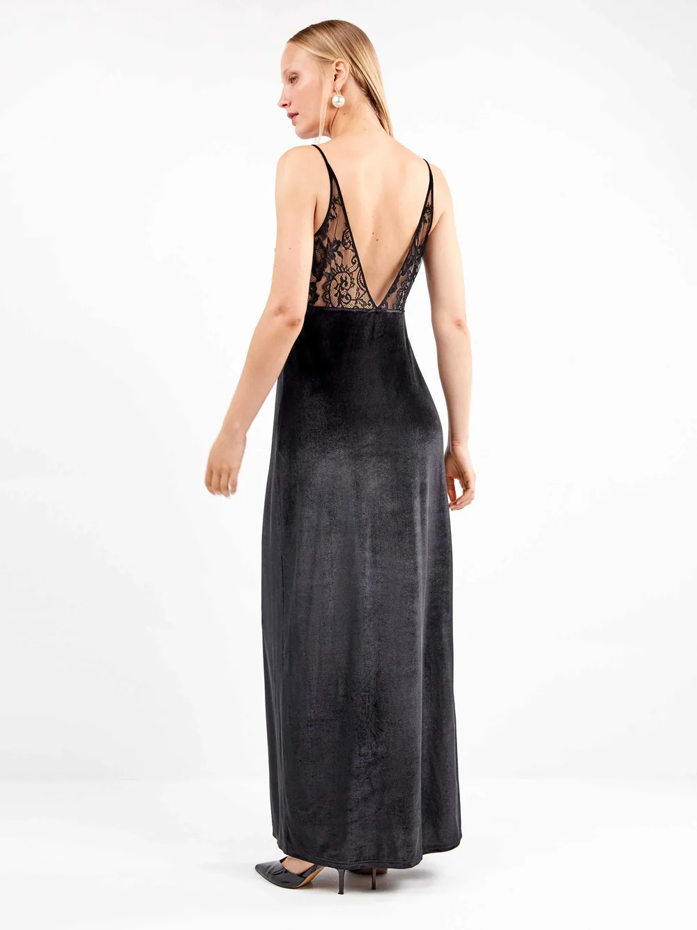 Tirantes regulables y detalle de galón de encaje en el pecho.