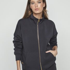 Chaqueta cierre con cremallera, cuello medio y bolsillos canguro.