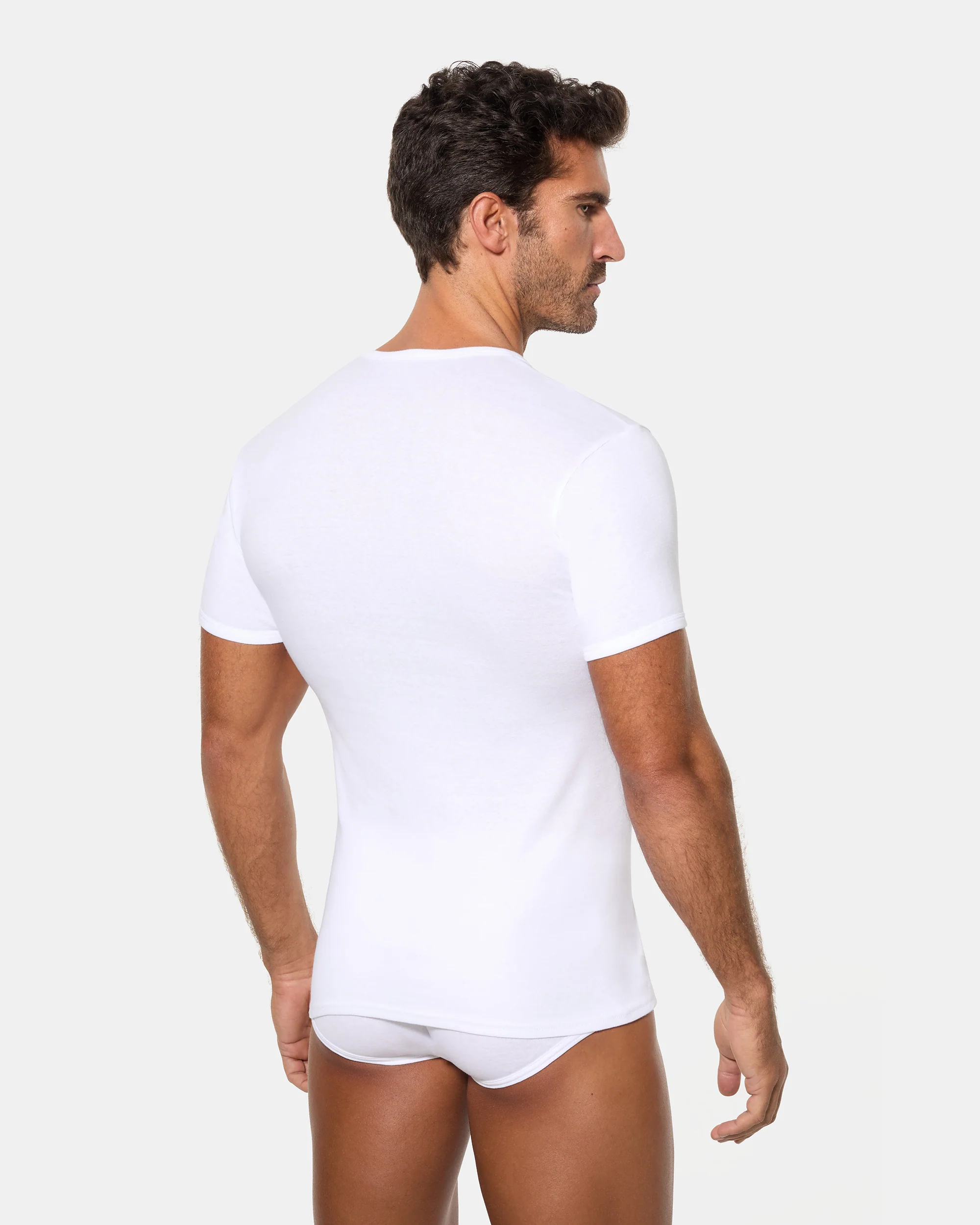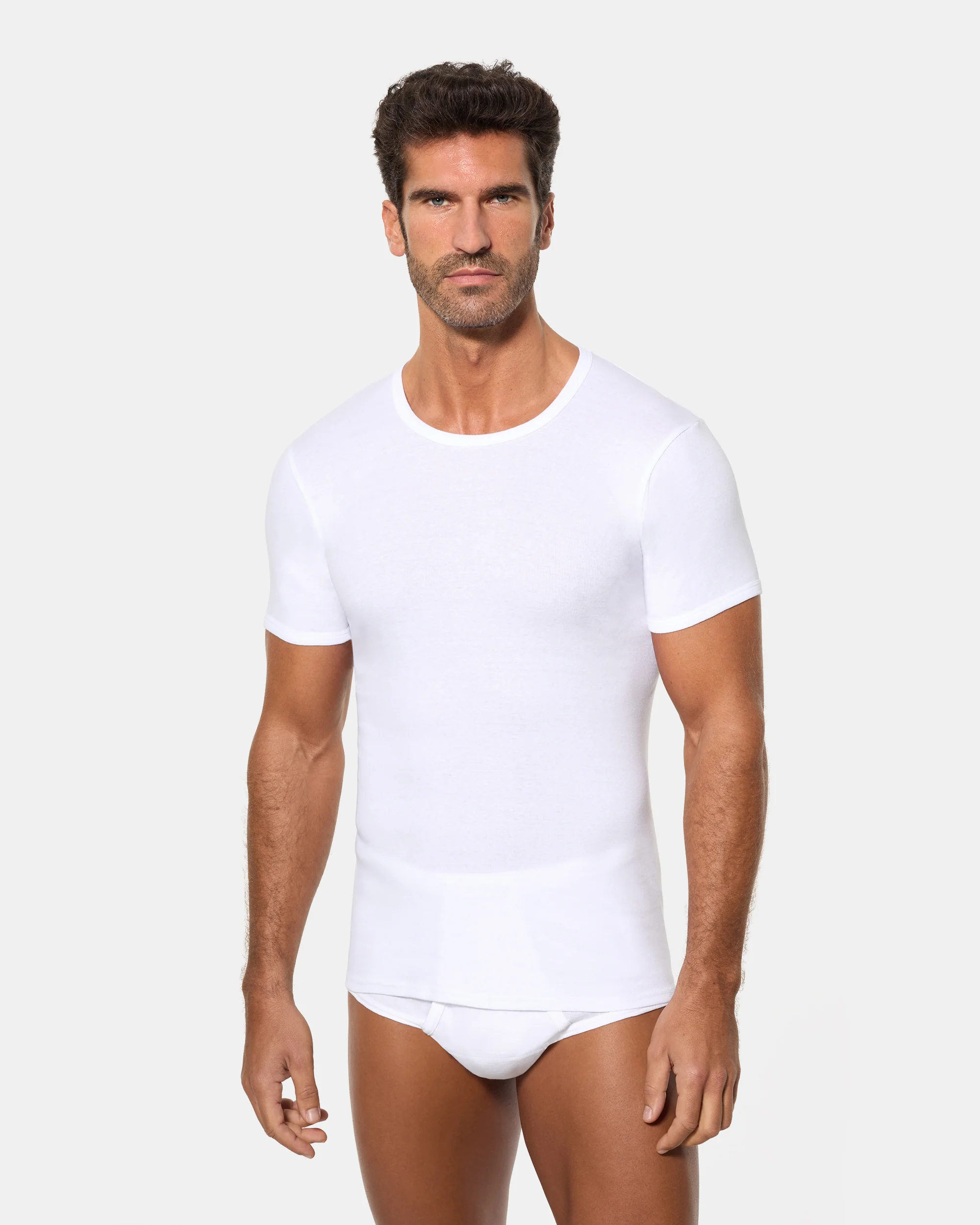 Camiseta manga corta y cuello redondo confeccionada con una nueva generación de algodón, muy suave al tacto, con una innovadora tecnología que absorbe la humedad y la expulsa al exterior manteniendo la piel seca.