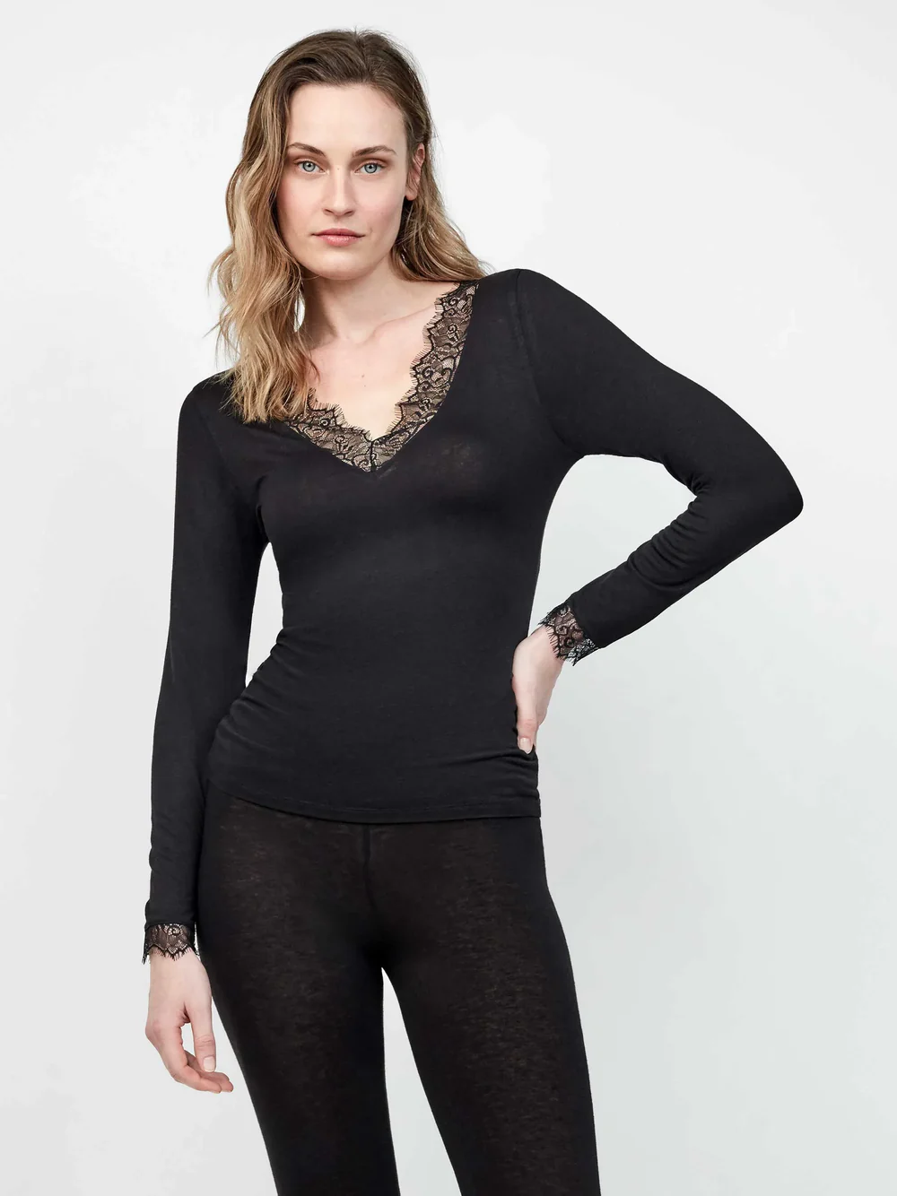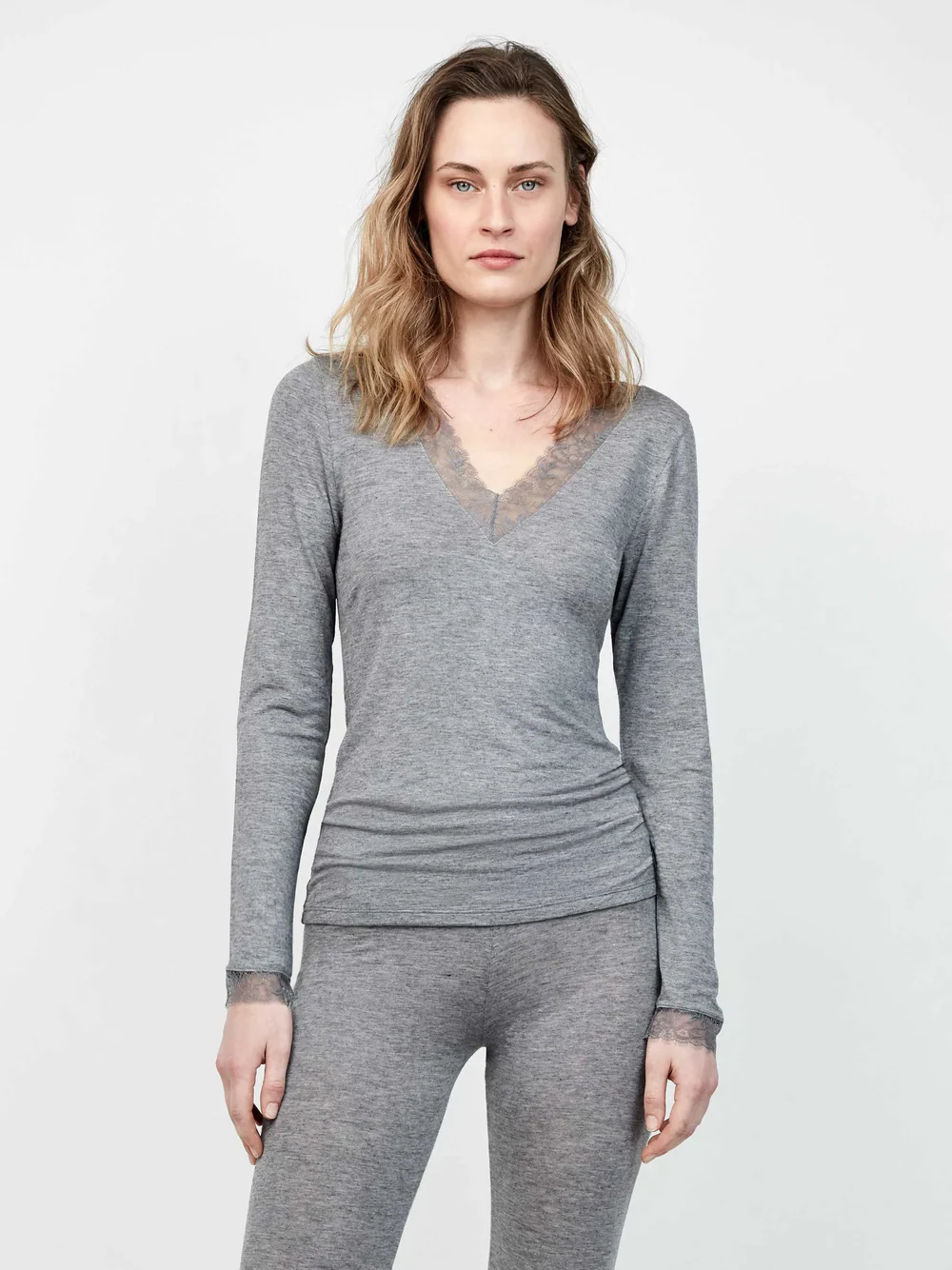 Preciosa Camiseta Lencera Manga Larga de Platino.
