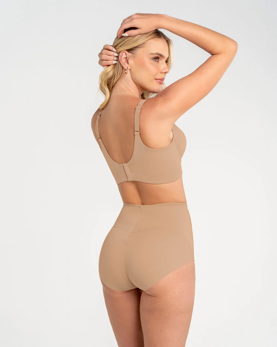 Braga de corte alto en cintura y doble soporte en la parte delantera para controlar suavemente tu abdomen, te da excelente modelación de los glúteos para que te sientas cómoda, segura y muy femenina.