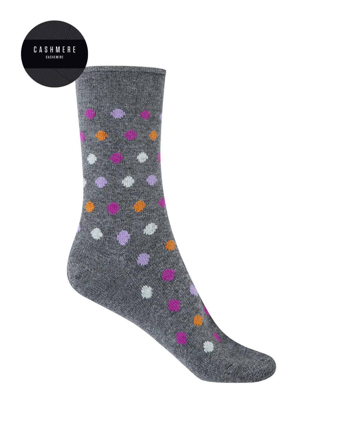 Calcetín Lana Topos Puño Roulé de Punto Blanco.