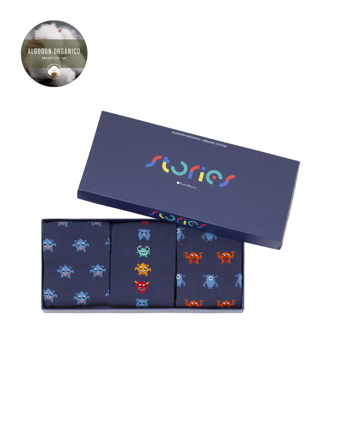 Estuche Pack 3 Calcetines Come Cocos de Punto Blanco.