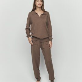 Pantalón con cinturilla confort, lazada regulable, puños y bolsillos laterales.