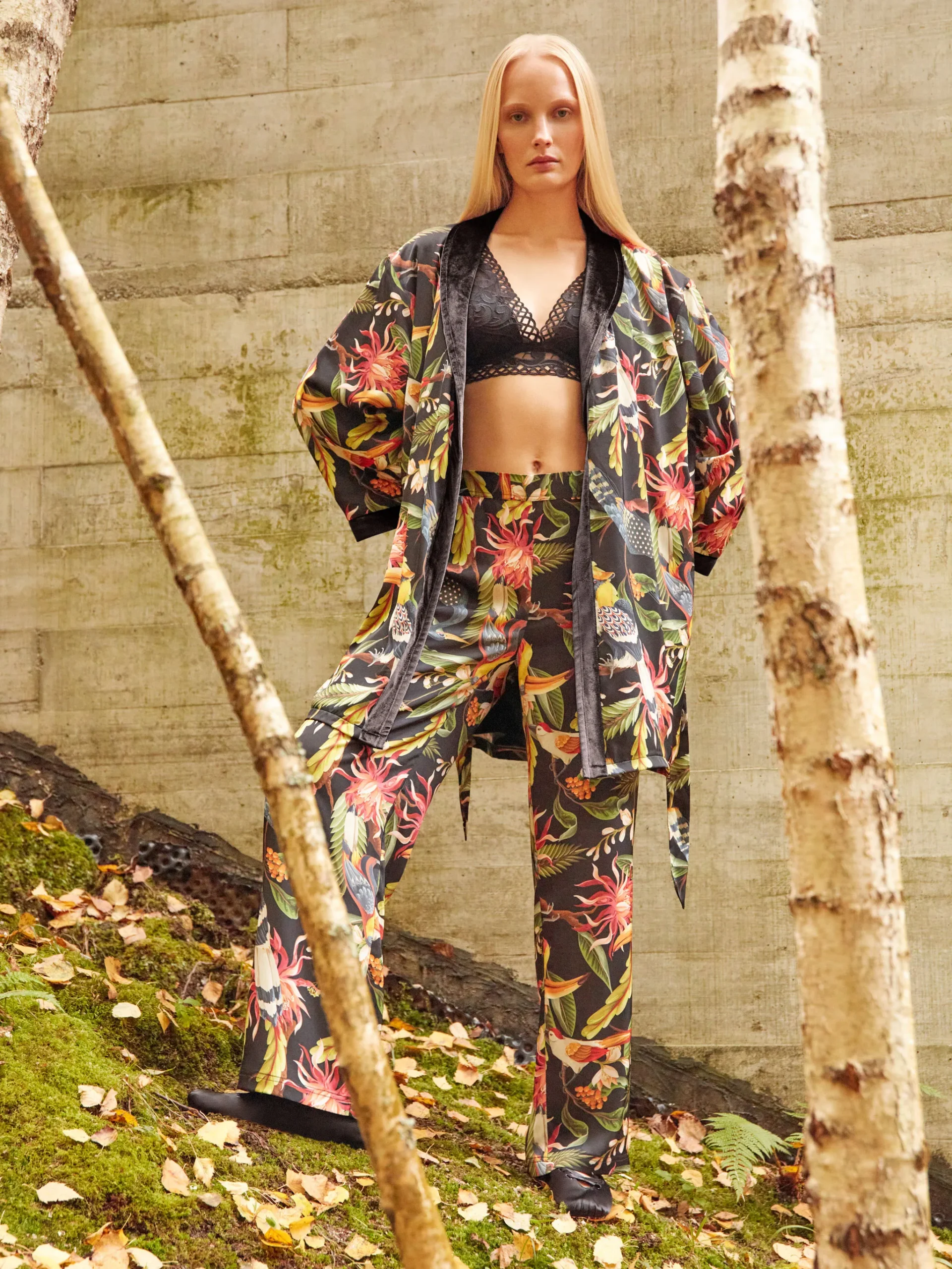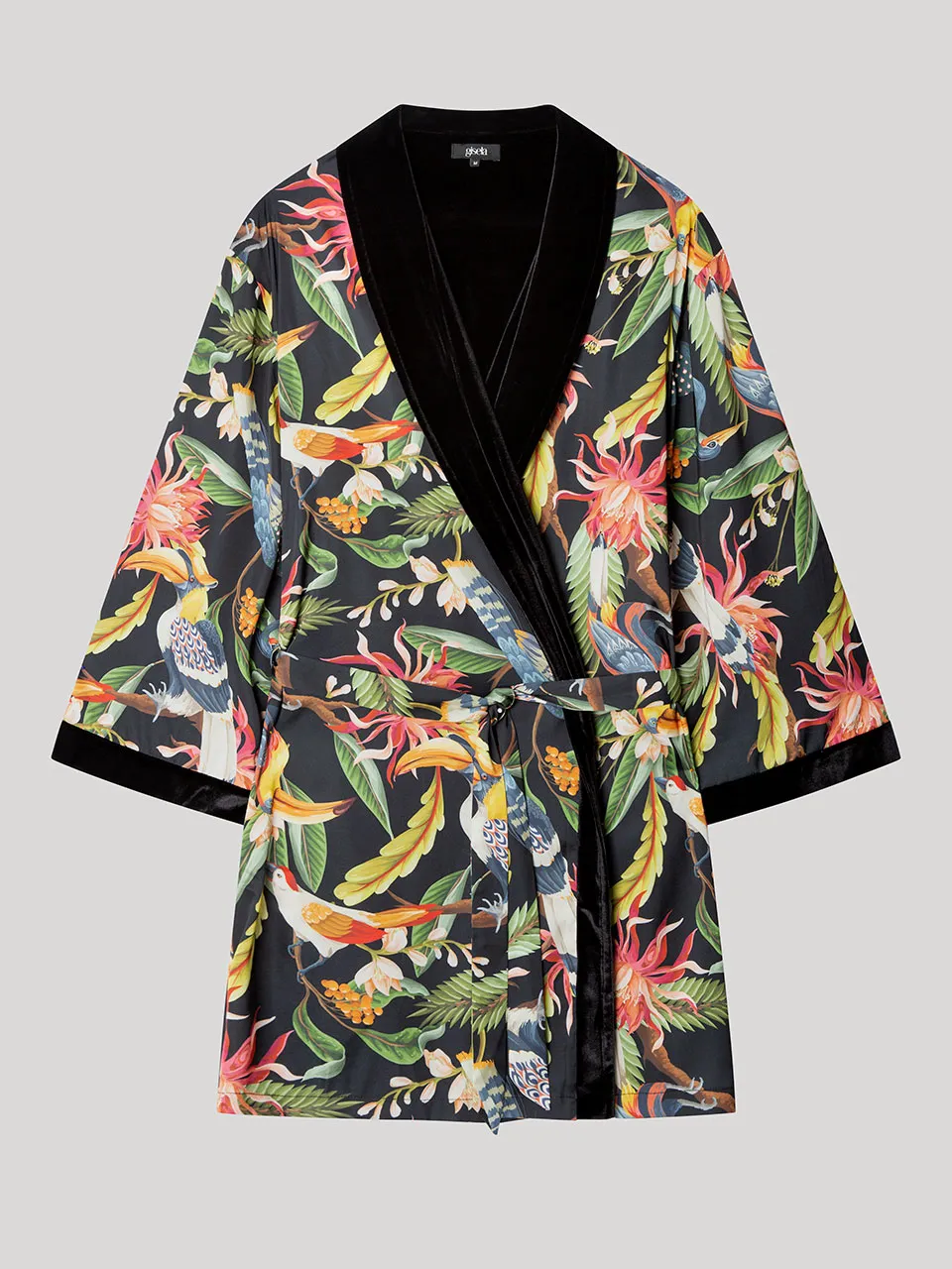 Camisón Kimono Janira 1045258 , el glamour y confort de la seda en combinación para esta prenda combinan perfecta de puntilla y silky satin elásticos que dan un toque de sofisticación, elegancia y confort.
