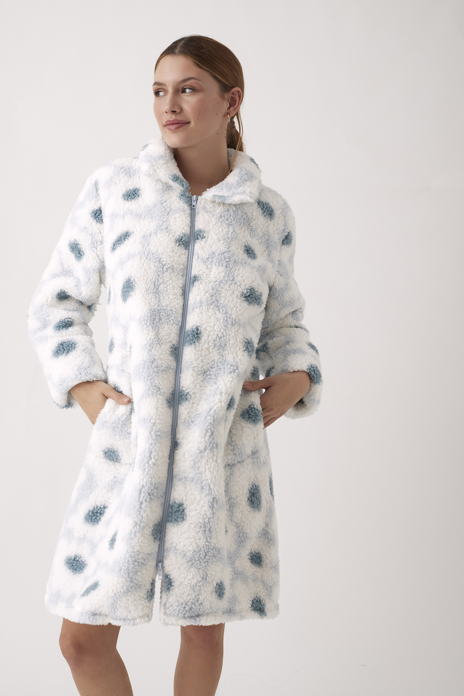 Con cuello bebé, cierre con cremallera y bolsillos laterales.