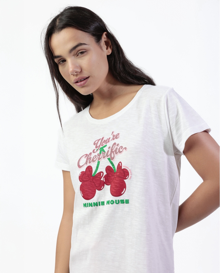 Camiseta mangas cortas con temáticas de Minnie y cerezas.