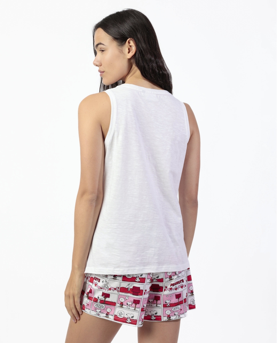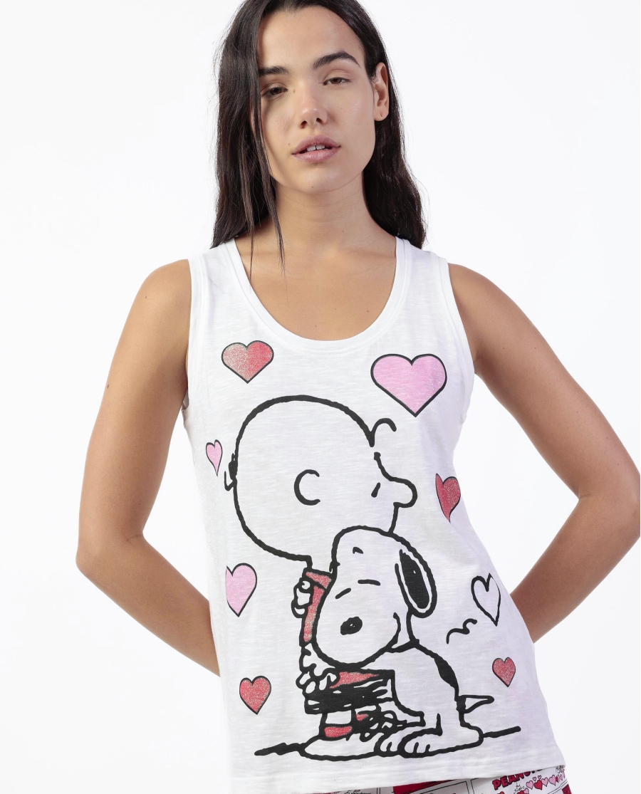 Temática de Snoopy con corazones en camiseta de tirantes.