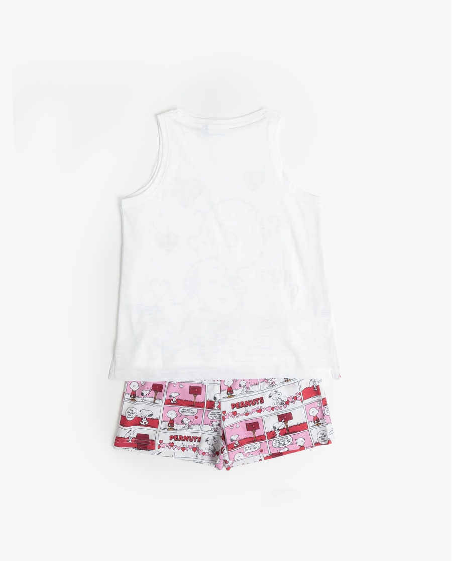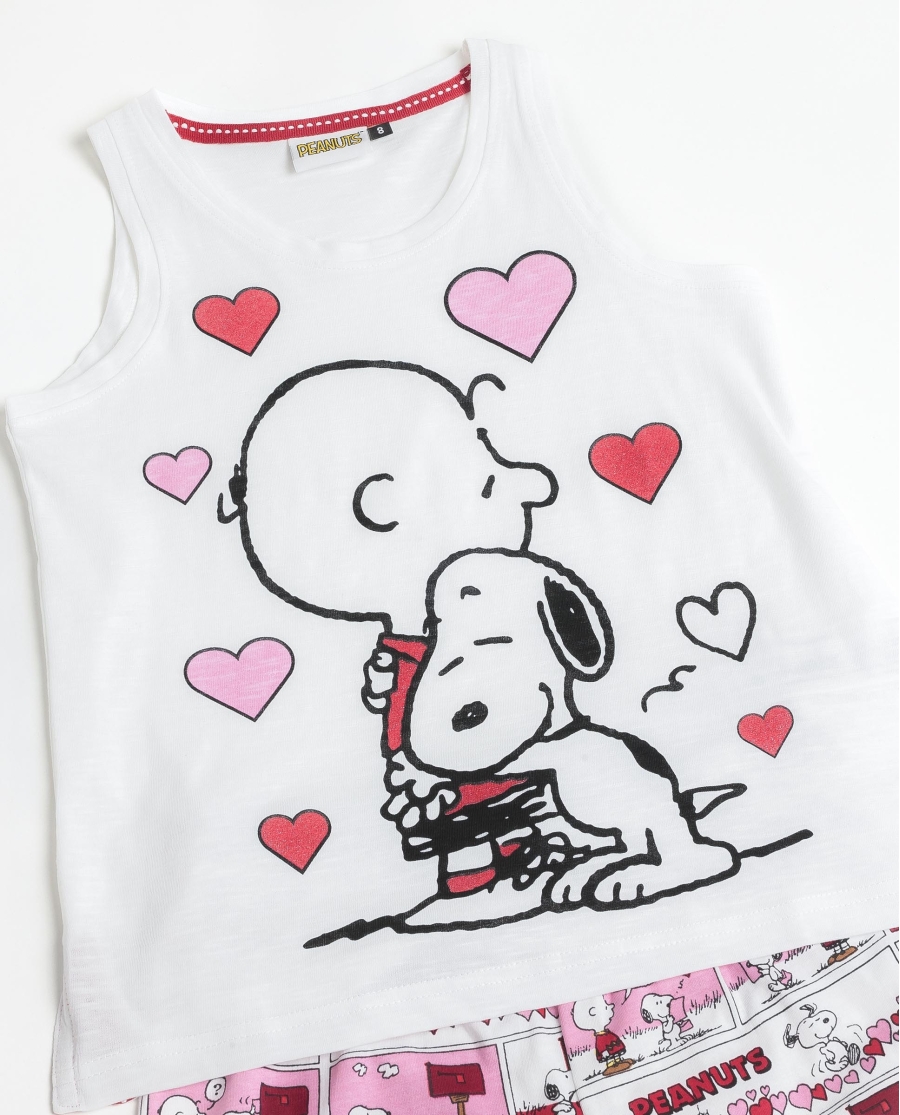 Temática de Snoopy con corazones en camiseta de tirantes.