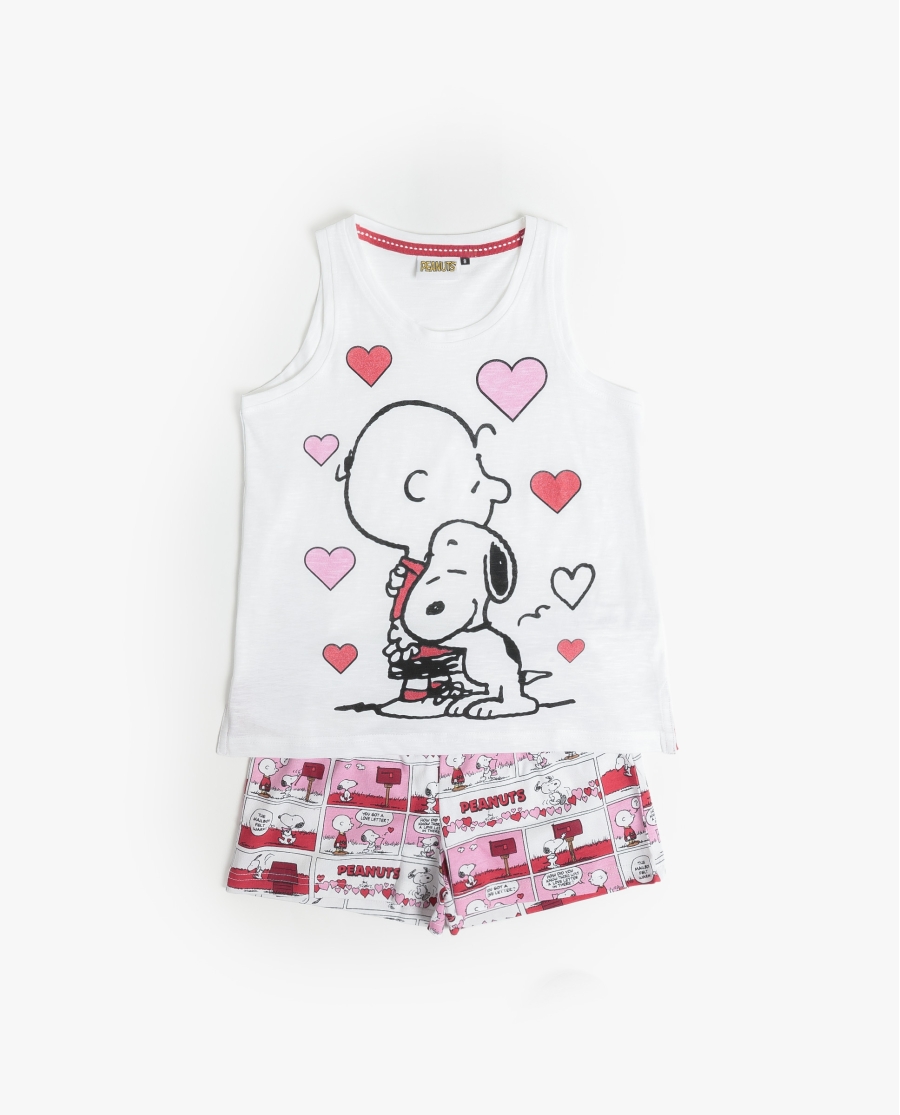Temática de Snoopy con corazones en camiseta de tirantes.