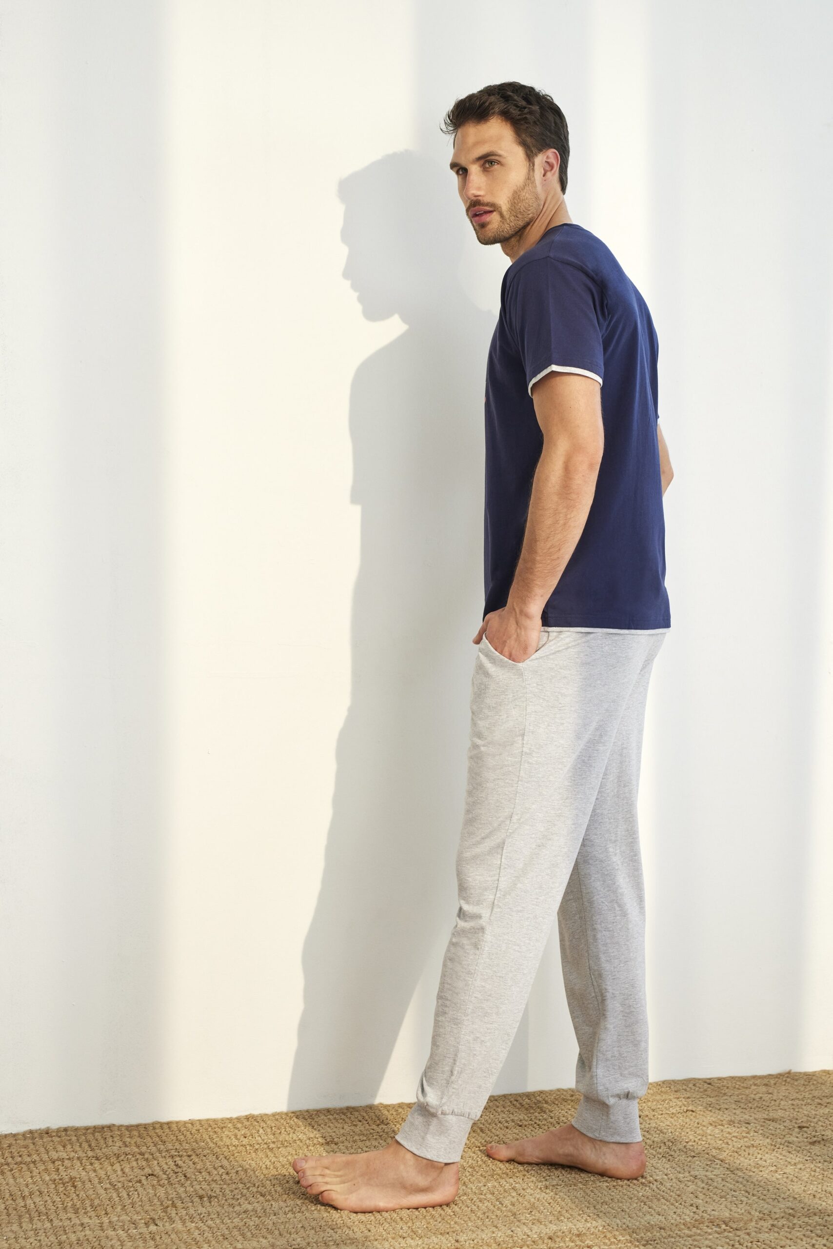 Pantalón largo con puños, cinturilla confort y bolsillos laterales.