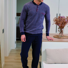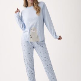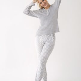 Pijama con camiseta lisa, cuello V y cierre abotonado.