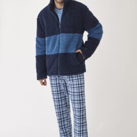 Bata 3/4 en peluche polar con cuello mao, cierre con cremallera y bolsillos laterales.