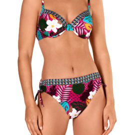 Precioso estampado floral con cenefas geométricas, a contraste de color.